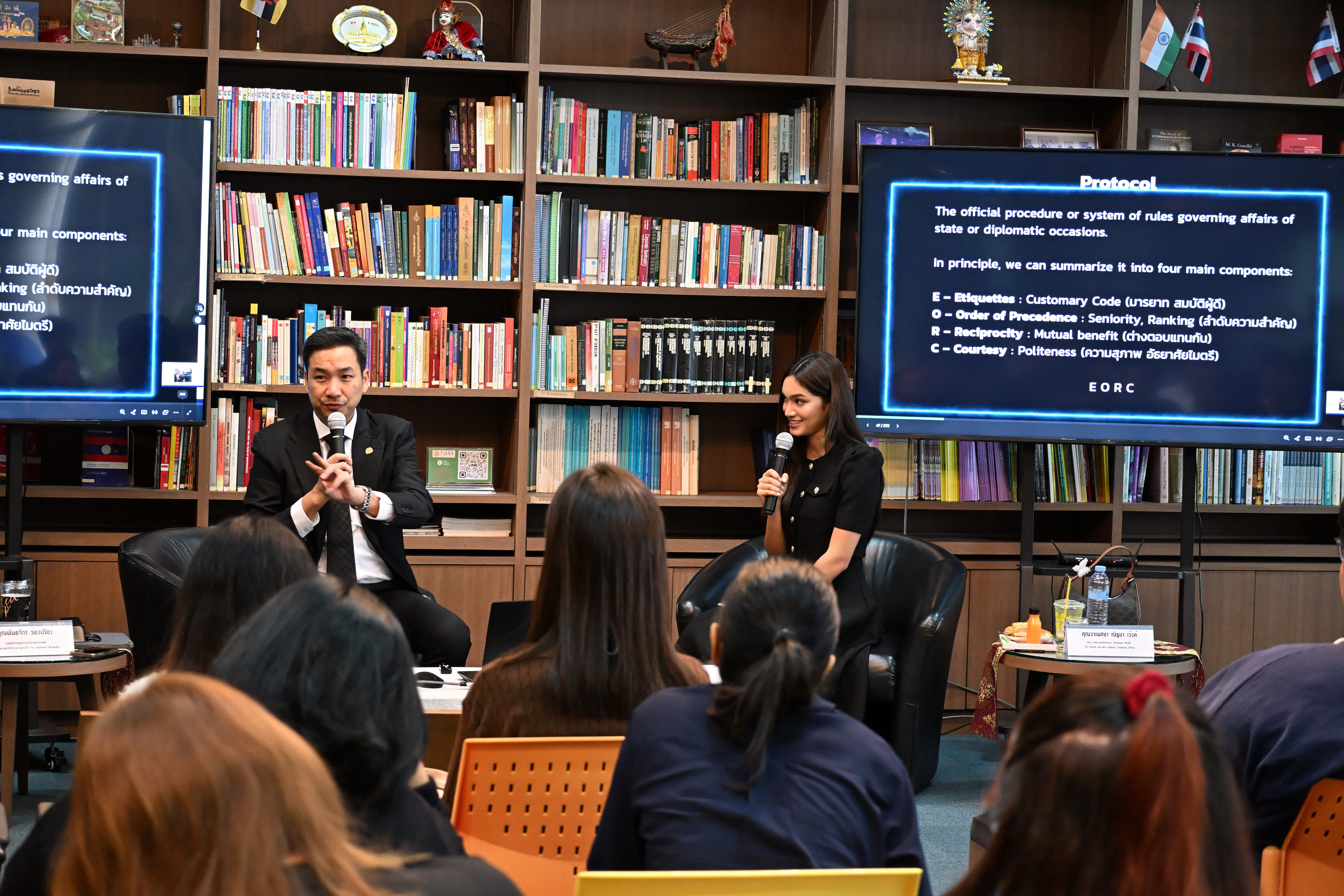 การอบรมครั้งนี้ได้รับเกียรติจากวิทยากรผู้ทรงคุณวุฒิ คุณพันธจักร ว่องปรีชา อดีตนักการทูต กระทรวงการต่างประเทศ ประธานเจ้าหน้าที่บริหารและผู้ก่อตั้ง The Diplomat Network ผู้มีประสบการณ์ในการจัดประชุมระดับนานาชาติ อาทิ การประชุมเอเปค การประชุมสุดยอดผู้นำอาเซียน และพิธีการระดับโลก การอบรมนี้ดำเนินรายการโดย คุณวาเนสซ่า ณัฐชา เว้งค์ (Vanessa Nattacha Wenk) Miss Intercontinental Thailand 2025 รองชนะเลิศอันดับ 1 Miss Global Thailand 2026 นักศึกษาชั้นปีที่ 3 คณะวิศวกรรมศาสตร์ สถาบันเทคโนโลยีนานาชาติสิรินธร (SIIT)